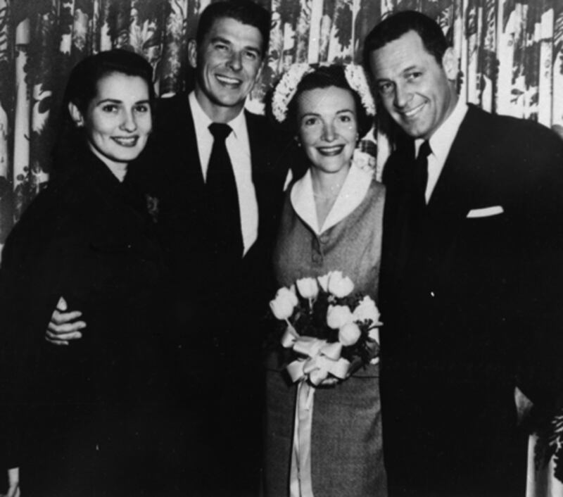 Shortly after Ronald Reagan proposed to actress Nancy Davis at Los Angeles' legendary Chasen's restaurant in 1952, the couple exchanged vows at the Little Brown Church in Studio City. The private ceremony was attended by only two guests: actor William Holden and his wife, Ardis, who served as best man and the matron of honor. Afterward, the Reagans went back to the Holdens' home to cut their cake, before spending their wedding night at the historic Mission Inn in Riverside, California. The hotel still features "The Great American Package" in honor of the late president.