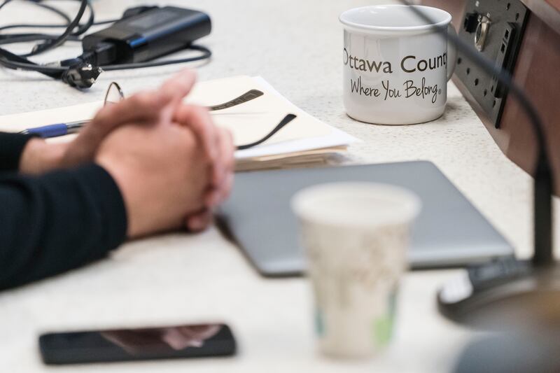 Ottawa County Commissioner Joe Moss speaks with reporters.
