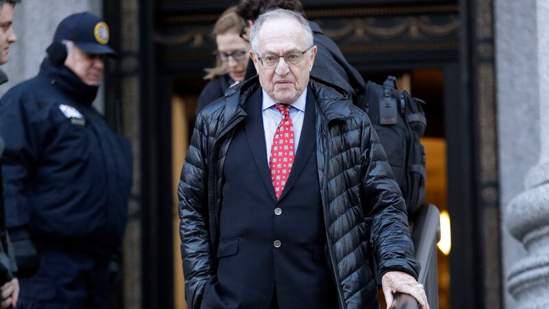Attorney Alan Dershowitz leaves Manhattan Federal Court, in New York.