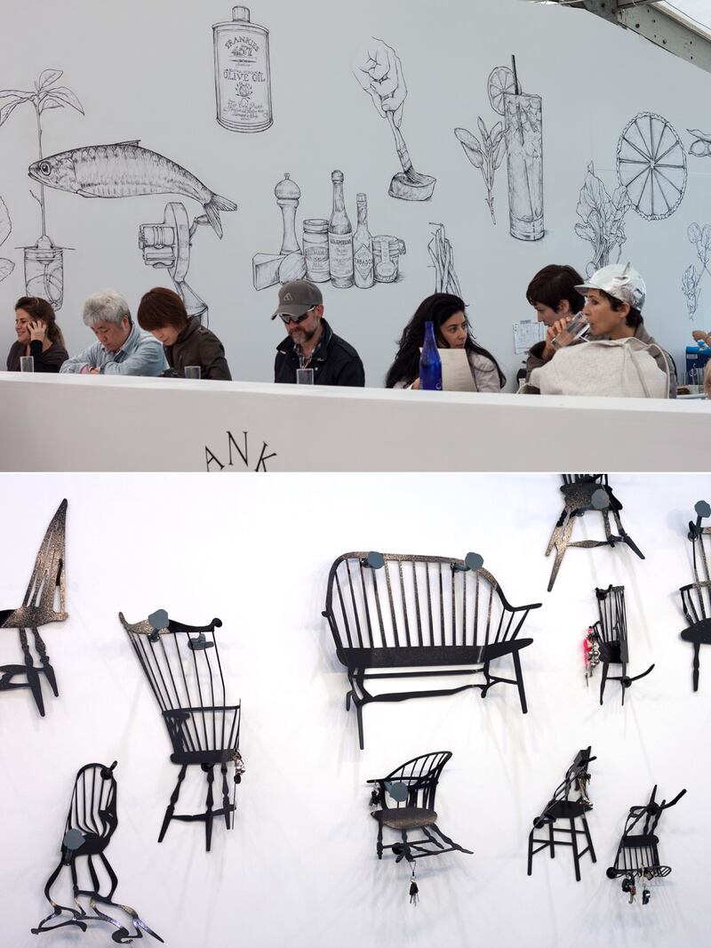 Playboy magazine will tell you that Frankies Sputino serves both "rock stars and regulars," and the same can be said of their full-service, pop-up restaurant here at the art fair. The menu "features classic Italian recipes, sourcing organic products from local providers, plus a wine list featuring small producers from Italy and beyond." Sold? If you haven't spent all your money on a piece of art work like this one from Helen Marten, titled "Traditional teachers of English grammer (powder coated laser cut steel, car keys, bells, forged and welded rebar)," then book a table and feast on some self-described deceptively simple Italian. Buon appetito!