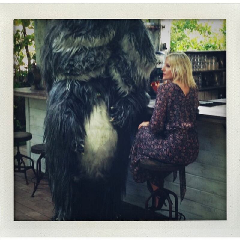 Harper's Bazaar executive director Laura Brown takes a break from Art Basel to hang with one of Takashi Murakami's oversized furry friends. "He looked different form his online profile but he had his charms," she stated.