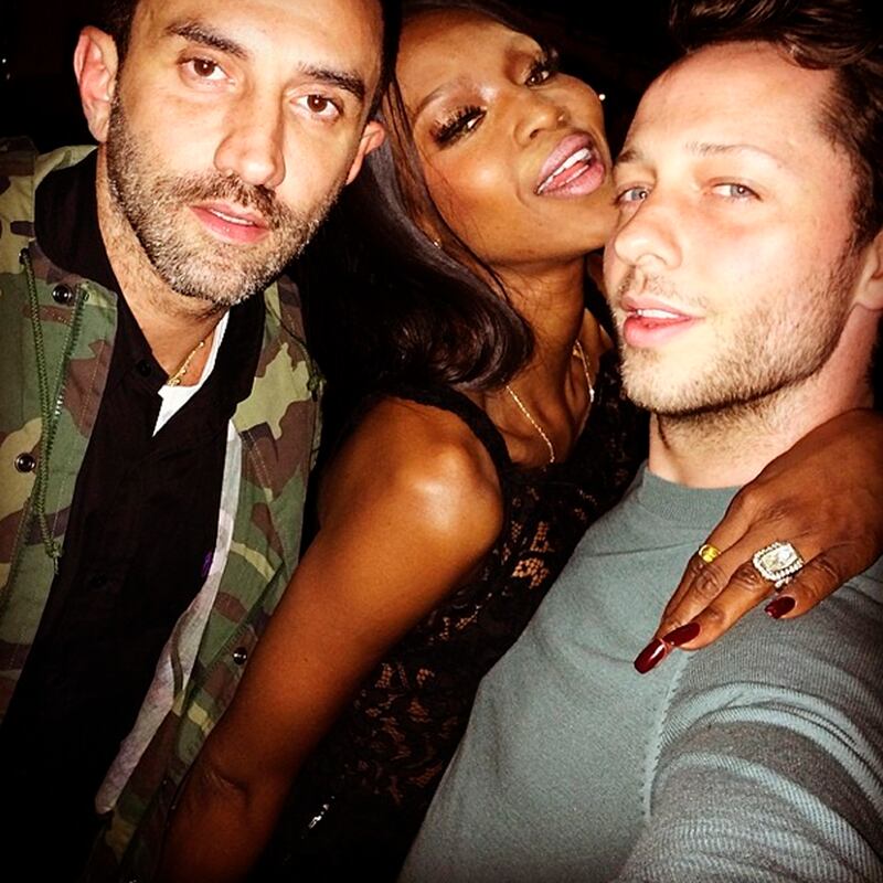 The Givenchy creative director caught up with long-time pals, model Naomi Campbell and fashion editor Derek Blasberg.