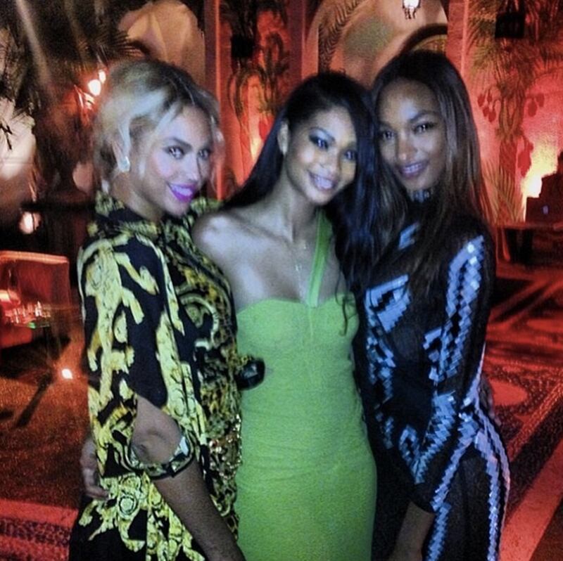 Bienvenido a Miami! Chanel Iman rang in the new year with her closest clique: Beyoncé and Jourdan Dunn. #YONCEALLONHISMOUTHLIKELIQUER.