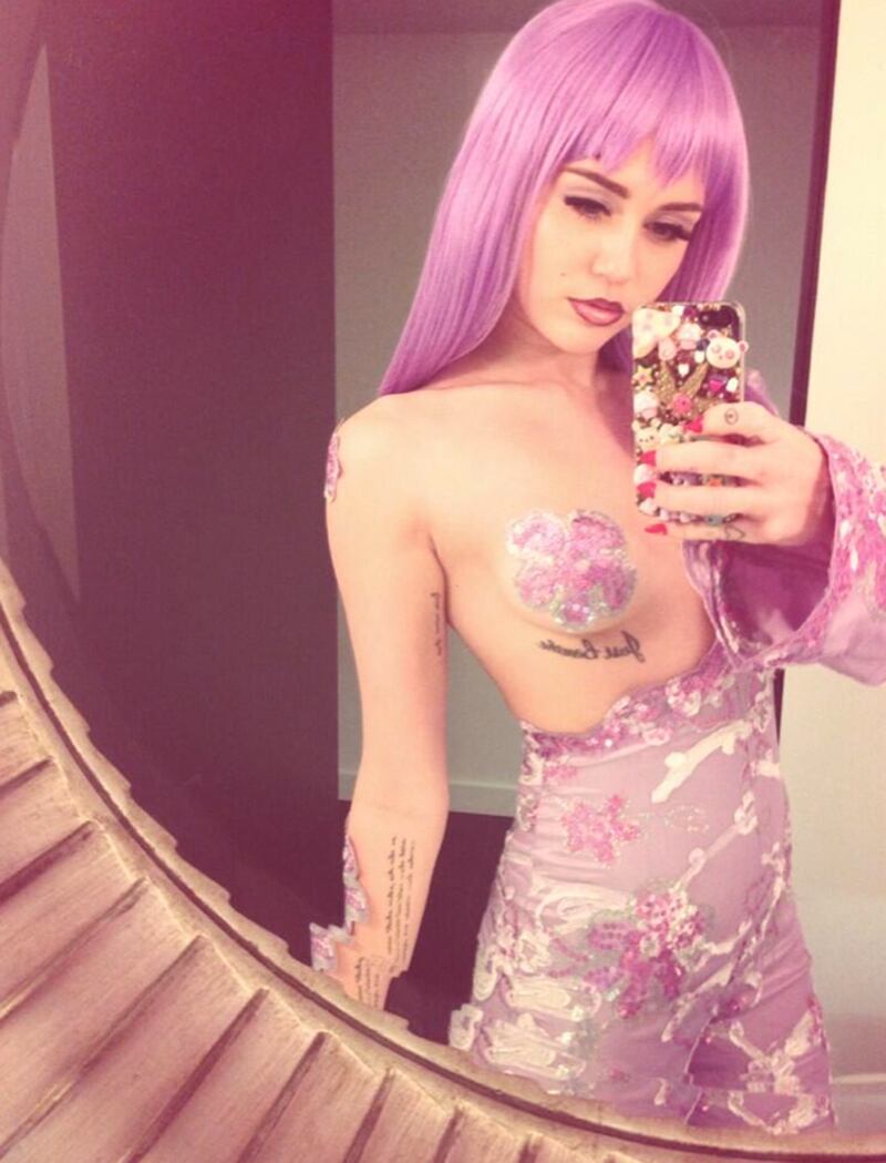 Yes, we know it's Halloween, but Miley Cyrus as rapper Lil Kim just gives us the creeps. The exposed boob, the nipple pasties, the fuschia-overload! Miley looks more like Hannah Montana gone raving.