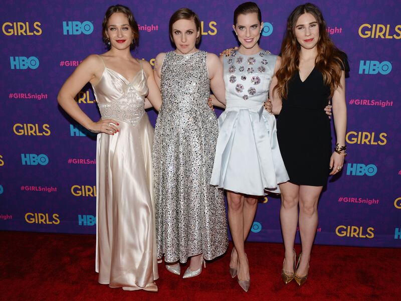 For the season three premiere of their hit show, Girls, on January 6, stars Lena Dunham, Jemima Kirke, Allison Williams, and Zosia Mamet were dressed to the nines. Kirke kept to her bohemian aesthetic, sporting a silk, lingerie-style vintage Geminola dress. Dunham stood out, looking fabulous in a silver, sequined dress from Rochas's Spring/Summer 2014 collection with Jimmy Choo heels. Williams wore a girly, short light-blue frock with floral appliqués by Christian Dior, and Zosia Mamet opted for a classic Saint Laurent little black dress.