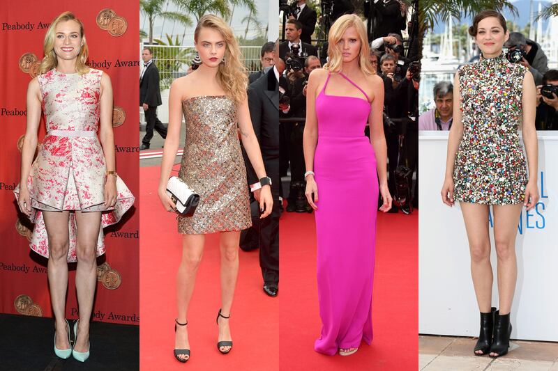 Supermodel Cara Delevingne finally made her Cannes debut on May 21, walking the red carpet for the premiere of The Search in a gilded sequined minidress by Chanel with a black-and-white quilted clutch and ankle-strap heels, also by the designer.