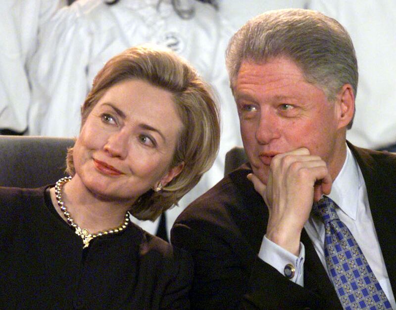 Bill and Hillary Clinton during a candle-lighting ceremony in 1998.