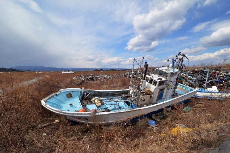 Fishing boats sit grounded on land three years after the disaster in Namie, near the striken nuclear plant. The 9.0 magnitude earthquake in 2011 sent a huge wall of water into the coast of the Tohoku region, splintering whole communities, ruining swathes of prime farmland and killing nearly 19,000 people.