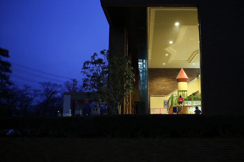 Children play at the indoor playground facility in Koriyama.