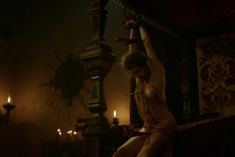 After the devil incarnate, King Joffrey, strips down his bride-to-be, Sansa, in the throne room and threatens to kill her with a crossbow, Tyrion (Peter Dinklage) thinks it best for the lil’ bastard to relieve himself of whatever sexual frustrations he has with a pair of prostitutes. So, he sends the teen Ros and Daisy, two of the best. Things take a dark turn when Joffrey forces Ros to beat Daisy with a whip, while he aims his crossbow at the pair. Later, he exchanges the whip for a club. But that’s nothing compared to Ros’ gruesome end. After Littlefinger realizes that Ros has been meeting with Varys daily to report on his scheming and double-dealing, the goatee-sporting pimp decides to pass off Ros to Joffrey (again), who’s interested in trying something “new and daring.” In Joffrey’s thoroughly messed-up world, this means using Ros as a live target and firing several arrows from his crossbow into her, pinning her bloody body to his bedpost.
