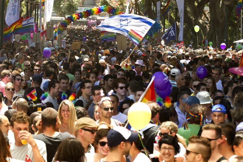 “Pinkwashing”—the calculated exploitation by Israel’s government of the LGBTQ community’s hard-won civil and social gains as a beard for the human rights abuses of the occupation—is a thing. It’s real, it’s documented, and the sheer cynicism becomes even clearer when we consider that the government that conducted a PR campaign around gay-friendly Tel Aviv is the same government that gives disproportionate power to religious parties that reject all that Gay Pride stands for.But what is also a thing, what is also real, is Israel’s actual LGBTQ community, and the joyous celebration that is Tel Aviv’s Gay Pride Week—a multi-hued happening to which people travel from all over the world, because it’s a blast. Witness the fact that this year’s “Official Video of Tel Aviv Pride Week” (which, okay, I admit: I did not know that was a thing) is performed by the straight and wildly popular Mizrahi singer Omer Adam (video below). Gay or straight, Pride is one of the best weeks of the year to be in the city that I still consider my home.The big event is, of course, the parade itself, which will take place on Friday. It’ll feature all the usual suspects—Adonises and Amazons in itty-bitty clothes; rainbow flags, clothes, and hair; the famous and the wanna-be. But participants will also find a quieter, ultimately more subversive presence, as well: