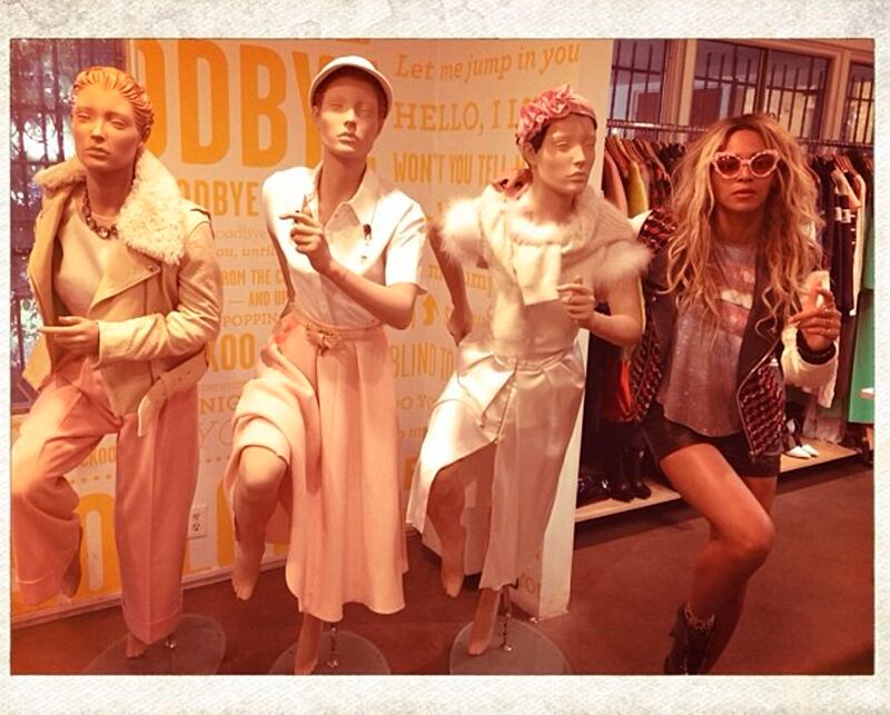 Sometime between recording 14 songs, filming 17 music videos, and presumably instilling the fear of God into anyone who would spoil the surprise because no one had any idea the new album was coming, Beyoncé found time to pose with mannequins. The luckiest mannequins ever.
