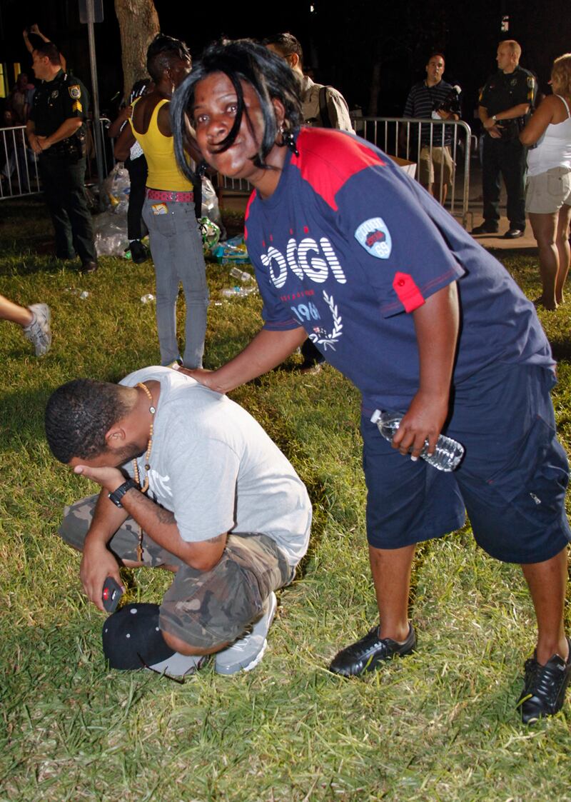 Martin Green (lower left) is comforted by Bridgett Welch after hearing that Zimmerman was acquitted of all charges.