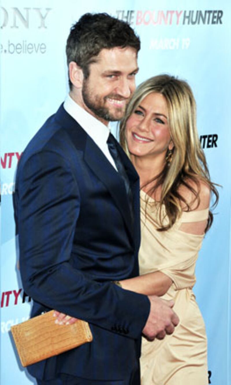 At the premiere of the highly anticipated movie The Bounty Hunter, on-again-off-again co-stars Butler and Jennifer Aniston hugged it out.