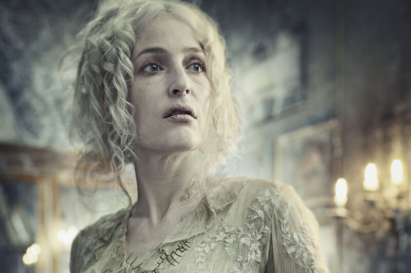 The former star of The X-Files, which became a worldwide hit and spawned two feature films, Anderson has, for now anyway, traded in Dana Scully’s FBI-issued handgun and severe suits for the tight-laced corsets and flowing frocks of such period dramas as Bleak House, The House of Mirth, Tristram Shandy: A Cock and Bull Story, The Crimson Petal and the White, Moby Dick, and Any Human Heart, in which she played a deliciously conniving Wallace Simpson, complete with a false nose. But it’s Anderson’s jaw-dropping turn as Miss Havisham in Great Expectations, which airs Sunday evening on PBS’s Masterpiece Classic after a three-night run in December on BBC One, that erases any trace of Scully’s bravado.