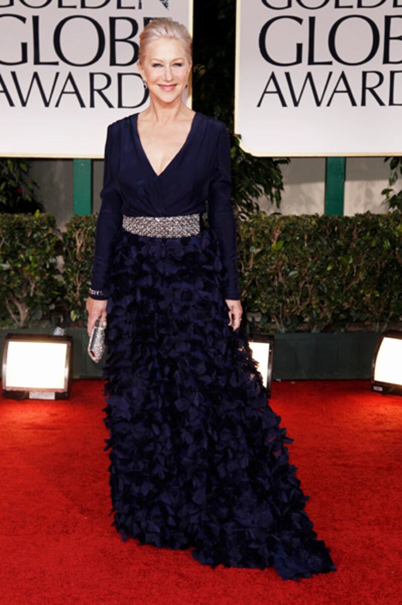 Presenter Helen Mirren wore a midnight blue Badgley Mischka gown with a bejeweled belt.