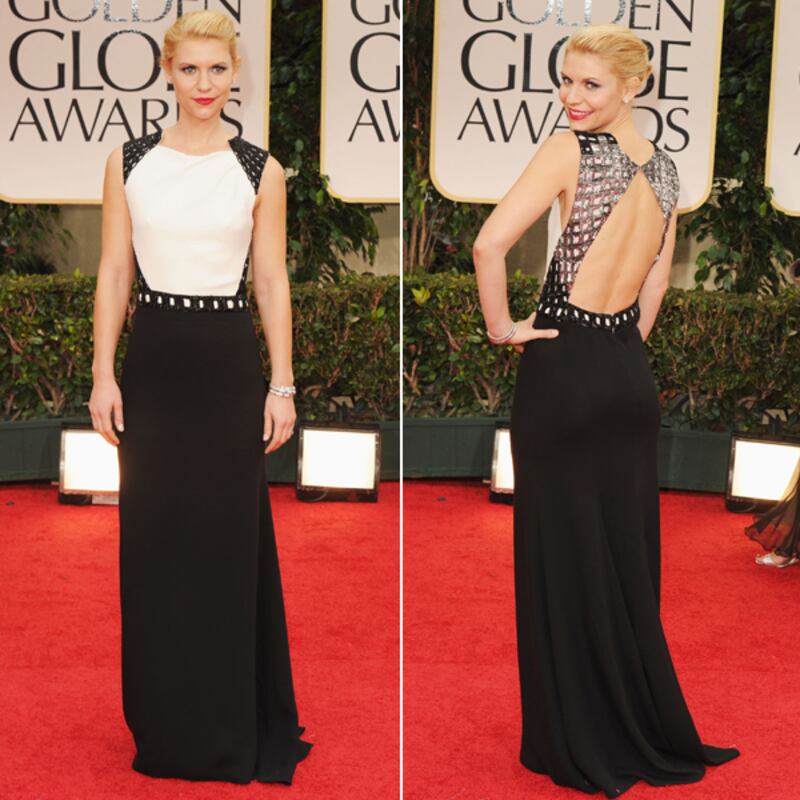 The Homeland star, nominated for Best Actress in a Dramatic Television Series, wore a couture J. Mendel ecru and black gown with embroidered cap sleeves.