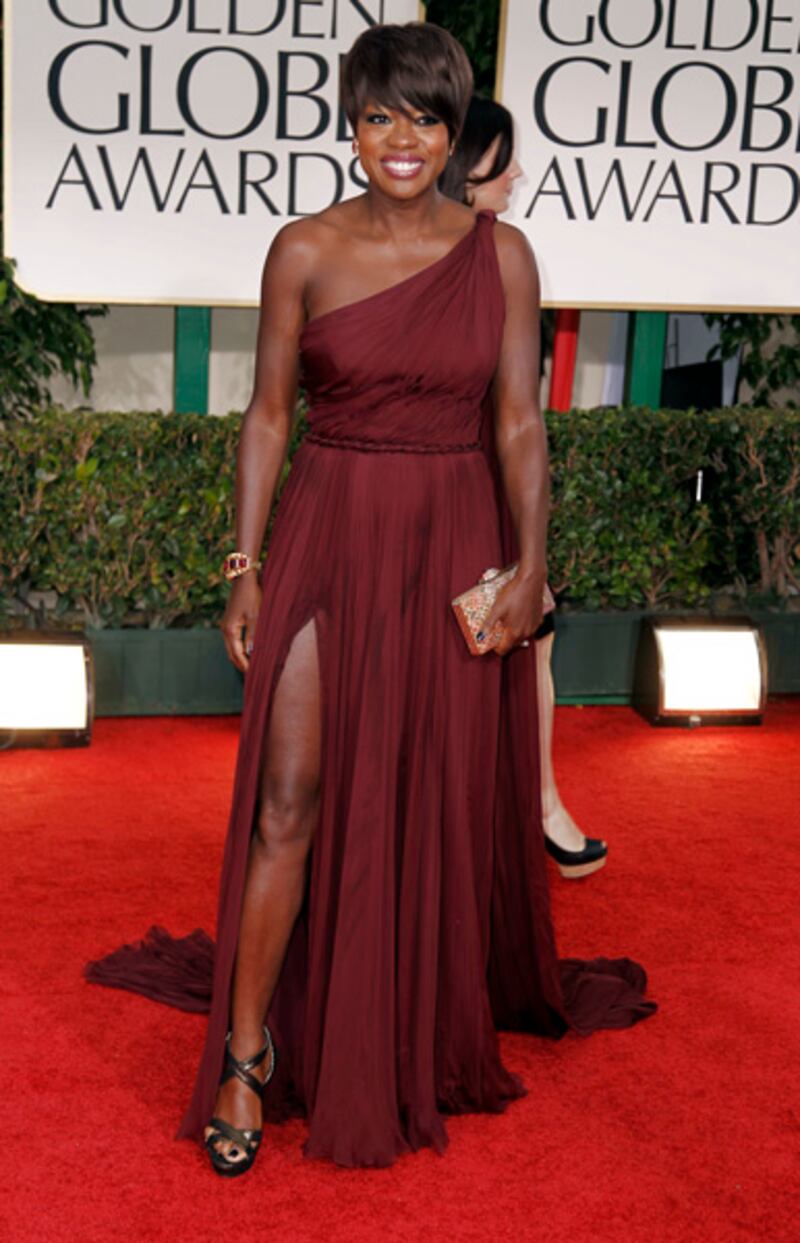 Nominated for her role in The Help, Viola Davis showed off her arms in a one-shouldered red dress.