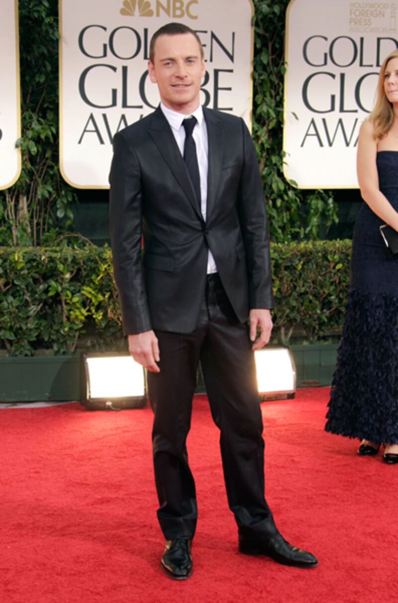 The Shame actor wore an Emporio Armani midnight blue one-button peak lapel suit with a classic white shirt and a navy neck tie.