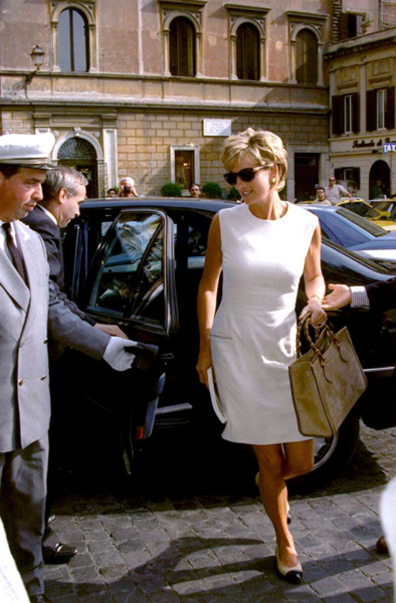 Princess Diana carries the Gucci bamboo-handle bag in Rome.