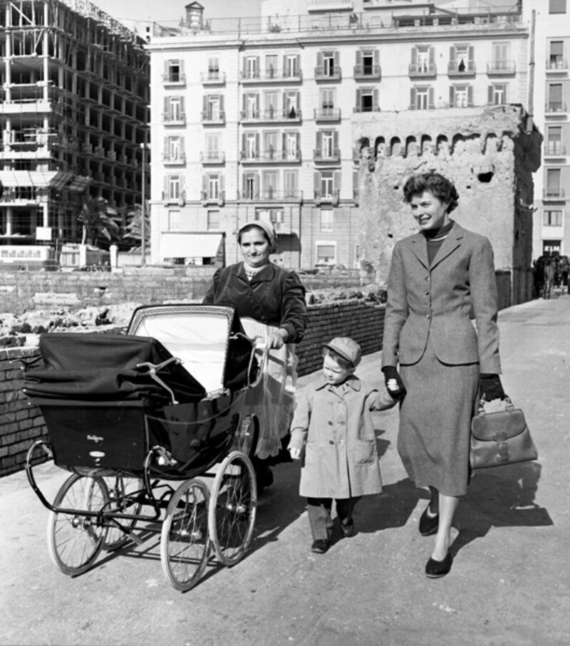 Ingrid Bergman is seen carrying a Gucci bag around Naples.