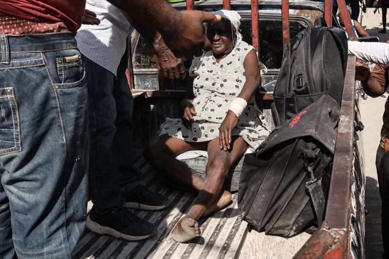 Injured locals arrive at the hospital in Les Cayes.