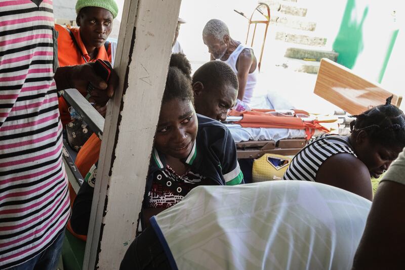 An injured woman arrives to the only hospital in Les Cayes.