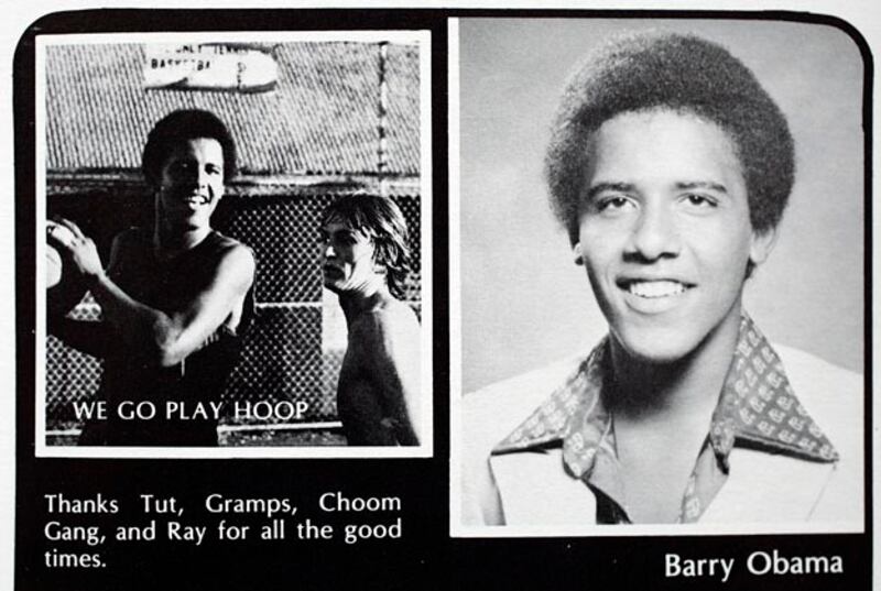 In another yearbook photo from the Punahou School, "Barry" poses with classmates in 1978.