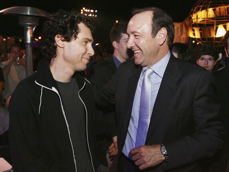 Director Bryan Singer and actor Kevin Spacey pose at the afterparty for the premiere of Warner Bros.’ “Superman Returns” on June 21, 2006, in Los Angeles, California.