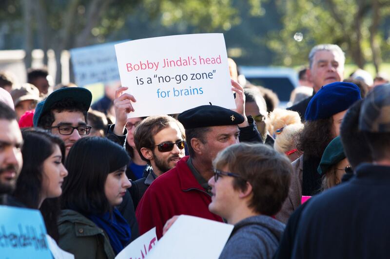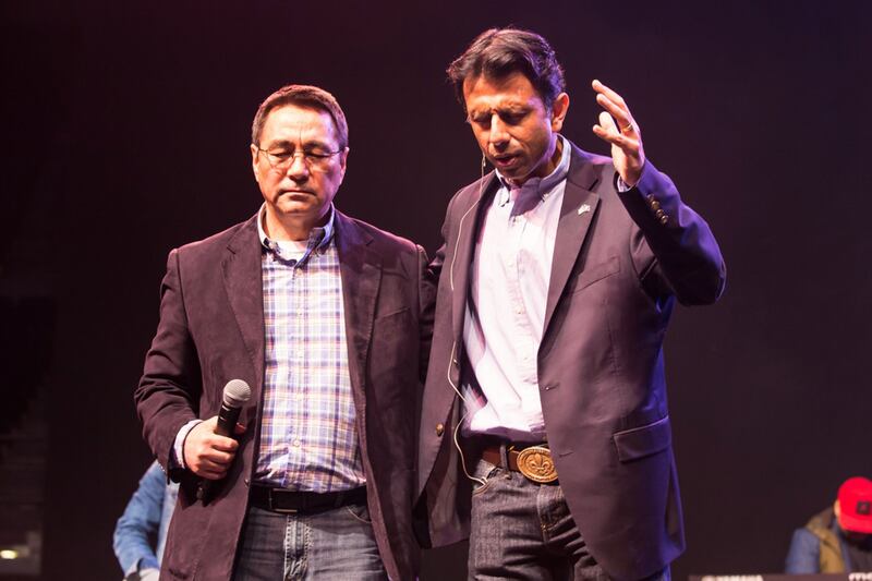 Jindal preaches and prays to small crowd.