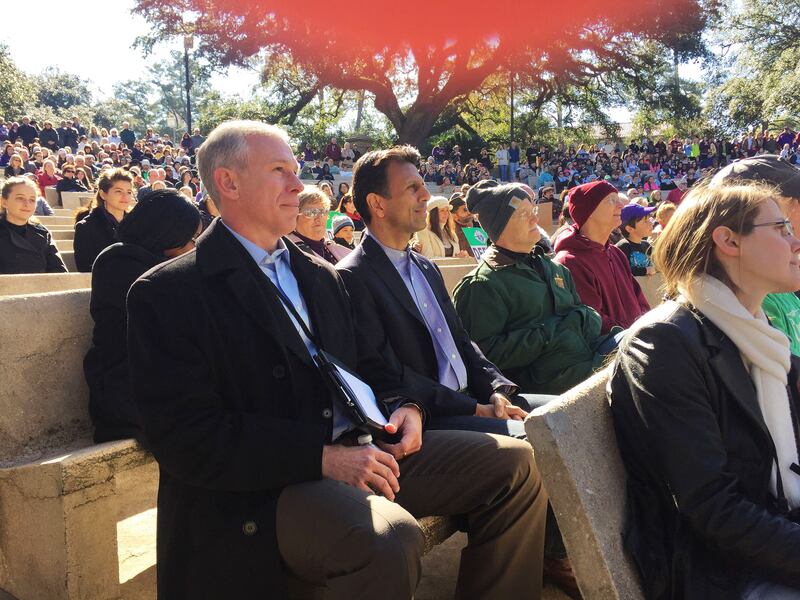 Bobby Jindal speaking to crowd at anti abortion rally on LSU campus before speaking at major prayer ralley.
