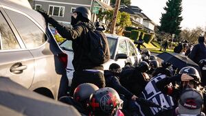 The crowd was a loose collection of members of the Proud Boys, Patriot Prayer and others far-right groups, many of them are armed with pistols and rifles. It got ugly fast.