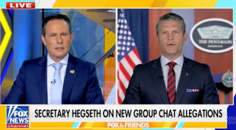 Talking for the first time about the latest developments in the simmering Signal scandal, Hegseth told Fox & Friends co-host Brian Kilmeade that he wasn’t worried about losing his job over the debacle.