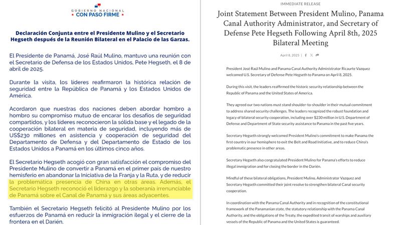 Pete Hegseth omitted a key point about the Panama Canal in the English version of a joint statement he released with the Panamanian leader.