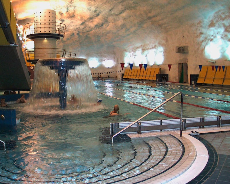 Inside the Itäkeskus swimming hall in Helsinki, Finland.