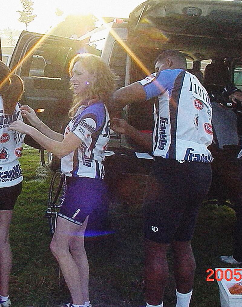 Cheryl Parsa and Herschel Walker at a 2005 charity bike ride event.