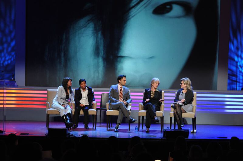Audience members watch the '"No Such Thing": Trafficking of Girls in the United States' panel at the 2011 Women in the World Summit.