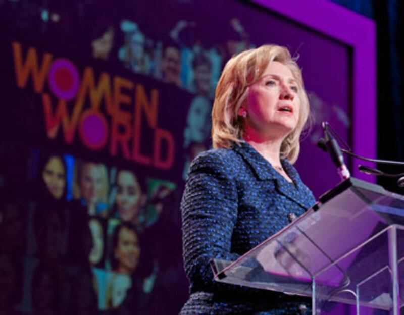 When she heads to Egypt and Tunisia next week, Secretary of State Hillary Clinton vows to “stand firmly for the proposition that women [in the region] deserve a voice and a vote,” she told an audience Friday night at Newsweek and The Daily Beast’s Women in the World summit at New York’s Hudson Theater. “More than that, they deserve to be able to run for office, to serve as leaders and legislators, even president.” At “president” the secretary received a standing ovation. With her smile, Clinton acknowledged the subtext: The women in the room—for they were mostly women—were egging the secretary on to another presidential run.