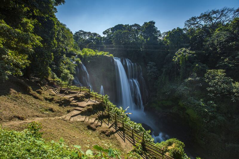 A picture of a mesmerizing Pulhapanzak waterfall on Lake Yojoa under the clear sky in Honduras