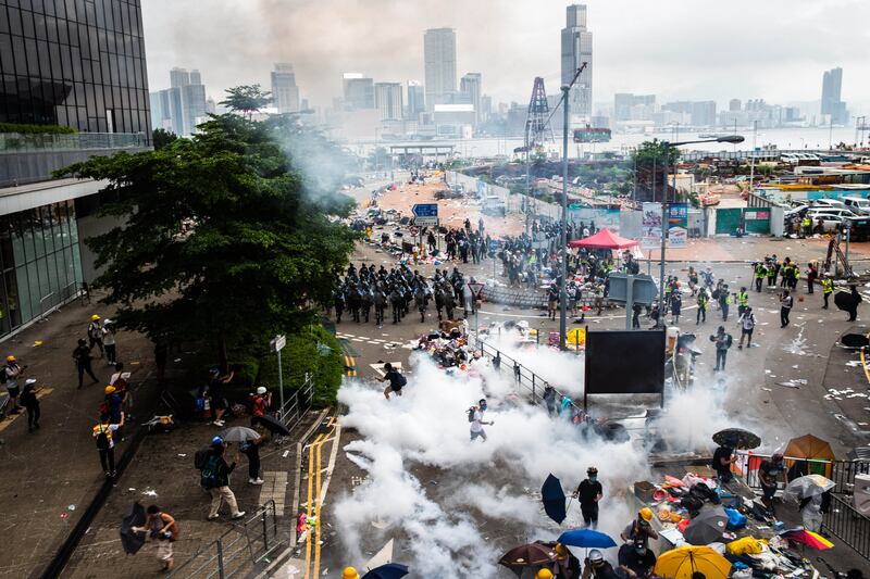 The police used water cannons, tear gas, batons, rubber bullets, bean bag rounds, and pepper spray on the crowd. Dozens were injured mere steps away from the towers of major international banks and Hong Kong’s stock exchange. The police also arrested the administrator of a Telegram messaging group, saying that he was conspiring to “commit a public nuisance.”