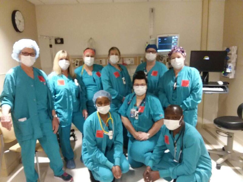A hospital spokesperson said the limited number of people in each room was part of a plan to “safely conserve” resources, and added that emergency N95s were located outside of all operating rooms in the event that a nurse needed to enter.