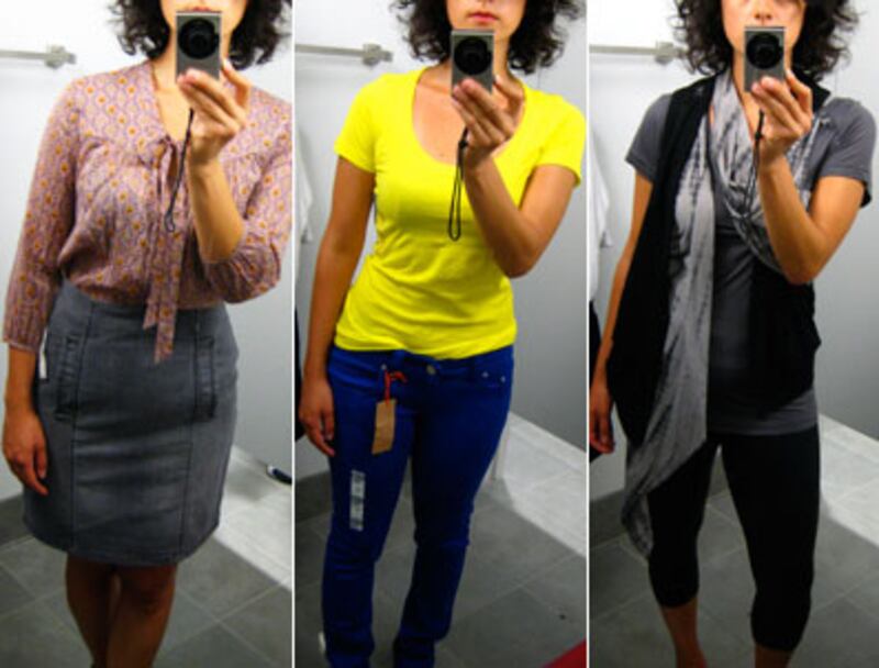 But when I spotted distressed “boyfriend” jeans from the I Heart Ronson collection—created for J.C. Penney by Charlotte Ronson—and something called Oxford and Regent, which looked like their version of Topshop, I knew that the informal back-to-school Teen Vogue challenge I’d given this particular Duchamping excursion would be in the bag. Sailor striped knits paired with the slouchy denim—very Jean Paul Gaultier. A tie-dyed vest half wrapped around my neck like a scarf, layered under another long black knit vest over rubberized leggings? A little Rick Owens, maybe. Who cares if the poufy skirt I found had an elastic waistband and was decidedly not Balenciaga? They’d never know the difference on the Lower East Side. Yes, I felt a little like Sandra Lee in the kitchen crafting something semi-homemade out of ingredients that finished second to the real thing. But you gotta feed the people somehow, and for now, it’s okay.