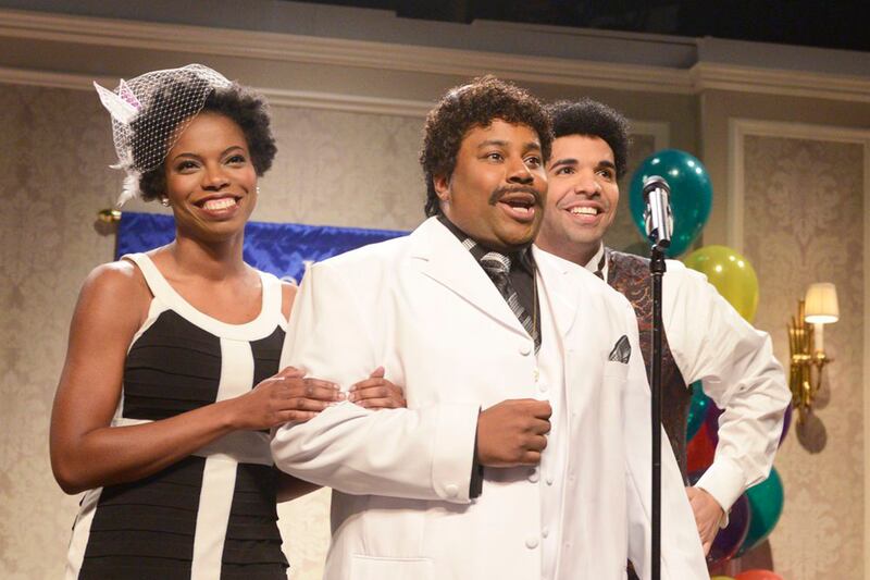 Sure, she might not have been given more to do than stand in the background of a few sketches and deliver a few innocuous lines here and there, but she was a noticeable presence throughout the entirety of this weekend’s episode, hosted by an almost startlingly at-ease and on-point Drake. Letting the audience know she was there, almost always there, was a really smart move on SNL’s part. Because as excited as anyone might have been to watch Drake try his hand at hosting the show in addition to being its musical performer, all eyes were on Zamata throughout the outing.