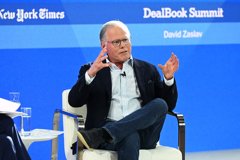 David Zaslav speaks onstage during The New York Times Dealbook Summit 2023 at Jazz at Lincoln Center on Nov. 29, 2023, in New York City. In Jan. 2023, he told reporters at Variety that the Batgirl movie wouldn't be launching on any platforms because it was “unreleasable.”