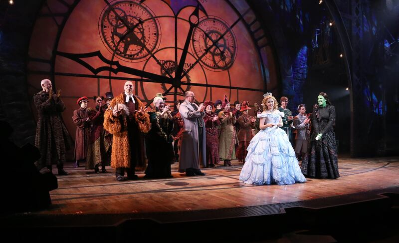 Leads Alli Mauzey (L) and Lindsay Mendez with cast attend “Wicked” Celebrates 10th Anniversary on Broadway at Gershwin Theatre on Oct. 30, 2013, in New York City.