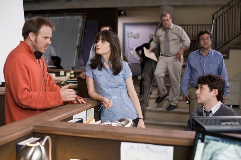 Zooey Deschanel, Joseph Gordon-Levitt, and Marc Webb in (500) Days of Summer.