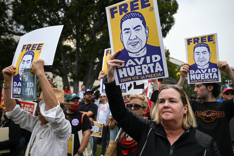 “Because HUERTA was being uncooperative, the officer put his hands on HUERTA in an attempt to move him out of the path of the vehicle. I saw HUERTA push back, and in response, the officer pushed HUERTA to the ground,” an ICE supervisor says in the complaint. “The officer and I then handcuffed HUERTA and arrested him. Other protestors continued to block the van and had to be physically removed from the van’s path.”