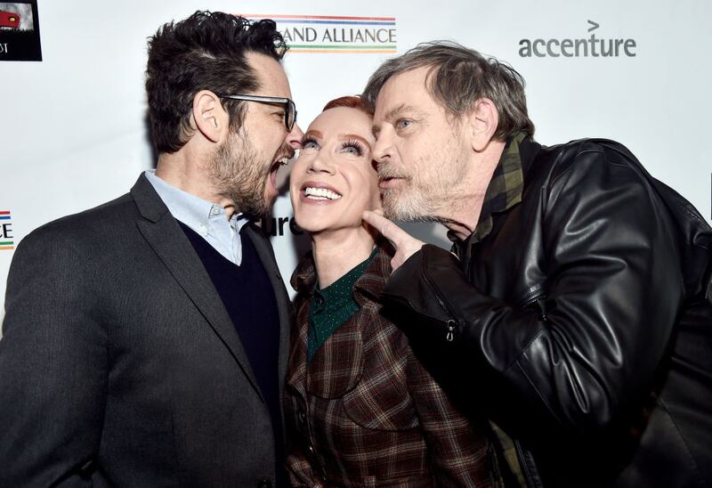 J.J. Abrams, Kathy Griffin, and Mark Hamill attend the Oscar Wilde Awards 2018 on March 1, 2018, in Santa Monica, California.