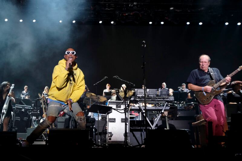 Pharrell Williams and Hans Zimmer perform at Coachella on April 16, 2017, in Indio, California.