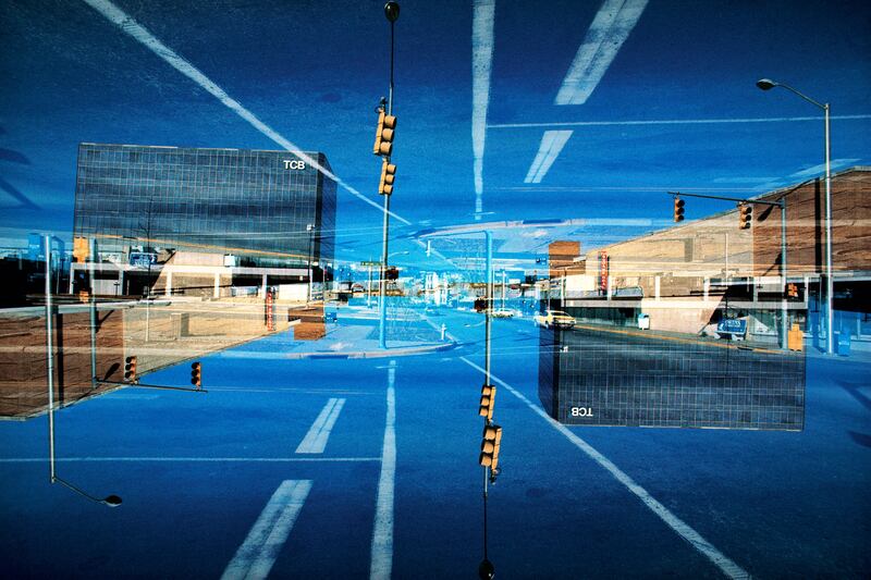 Olivier shot in the city streets in Australia and Egypt – the Egypt pictures became a book, one of his many – but from very early he was working in the tradition of the manipulated photograph. “I took a cab in New York, a yellow cab … and the yellow cab seems to come out of the wall,” he said. “That was in 1976. I would put people into a wall. At this time there were no computers, no Photoshop. I did it all by double exposure.”